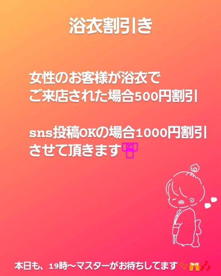 お祭り、花火大会の後や夕涼み等浴衣でのご来店お待ちしてます👘